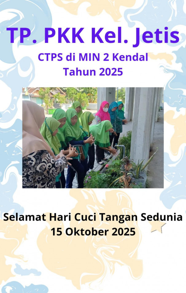 Rabu, 15 Oktober 2025 Selamat Hari Cuci Tangan Sedunia Bersama Kader dan anggota TP.PKK Kelurahan Jetis, Bidan Kelurahan Jetis, Lurah dan segenap jajaran perangkat Kelurahan Jetis serta Adik2 siswa siswi MI N 02 Kendal dalam rangka hari Cuci tangan sedunia. Ayo giat selalu cuci tangan agar meningkatkan Kesehatan di Lingkungan warga maupun di Sekolah.